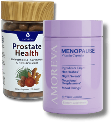 Amoréva uses plant-based ingredients that support hormonal balance, calmer sleep, and steadier urinary habits for anyone dealing with menopause changes or prostate discomfort.